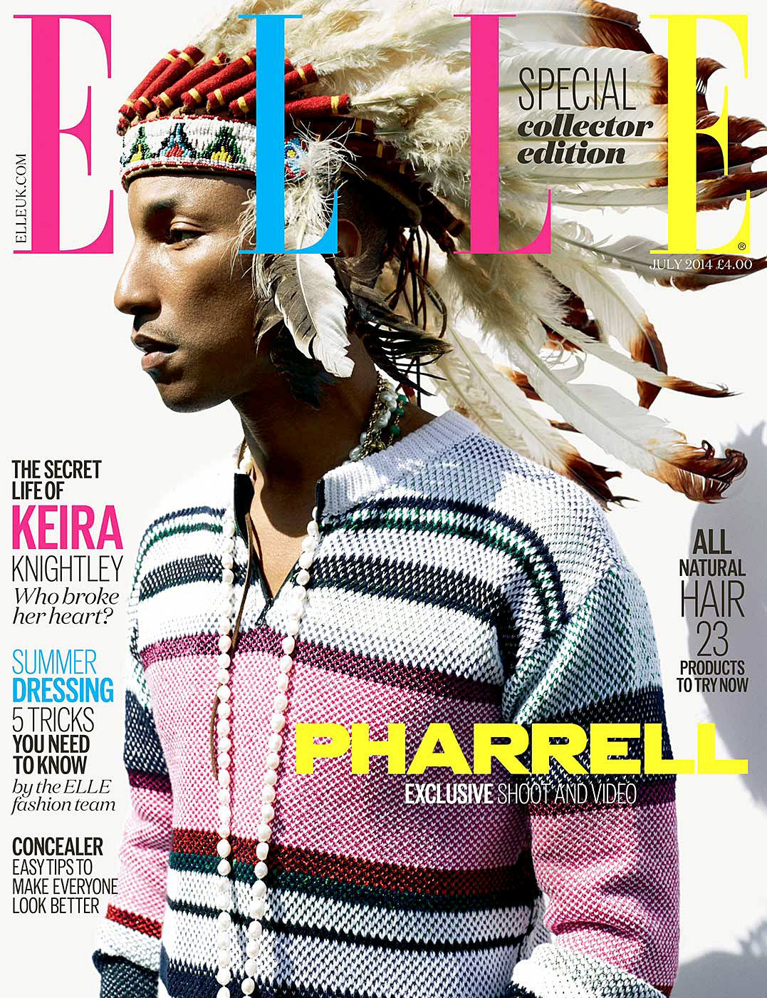 Some folks on social media are #NotHappy that Pharrell wears a Native American headdress on the new cover of Elle UK.