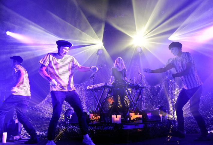 Grimes and mimes. Check out photos in the gallery above and watch fan footage of "Go" below.