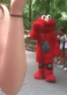 Some people will suggest that this man is crazy or at the very least awful, but you have to admit, the Elmo costume really helped him get his message out there.