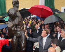 Cool museum! (Or "coolseum." GOOD NIGHT!) Is it suggested donation? Because if so I would like to donate ALL MY MONEY. Are you kidding? A couple childhood photographs, a barbell, and some fucking bed? Sign me up. What are the benefits of being a museum member? Do you get to drink Jew blood in the private roof garden? Are you occasionally invited to gala events where living monsters inject human growth hormone into their eyeballs and then have 10-person gang bangs on the aforementioned bed? I know I already said sign me up but is there a way to sign up twice? Arnold went to a dedication ceremony this weekend, which included the unveiling of a bronze statue of himself that he also commissioned (how many times do I need to say cool museum before you guys will know how cool I think this museum is?!) Anyway, Arnold had some pretty powerful words for his fans this weekend (while an oom-pah band played in the background, obviously, not a joke, that is how it went):