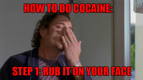 Vince goes over to Carl Urtz's house and discovers that he has been snookered. Urtz really only said he was going to produce his Ukrainian mining disaster made-for-TV movie starring Johnny "Concrete Heat" Drama in exchange for Vince playing a role in Taxman. Classic Urtz. He fucked us on Danger Beach and now he's trying to fuck us on this. Although, in his defense, Taxman does sound like the best movie idea since Cleaver. It turns out that Urtz is on cocaine.