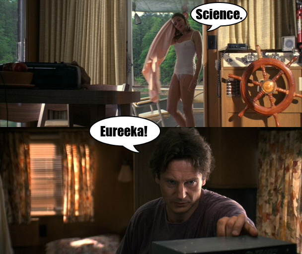 So, Nell is this lady who lives in a cabin in the woods and was raised by her mother. When the movie starts, her mom has died and a doctor (Liam Neeson) comes out to the house to see what's up and that's when he finds Nell. Hi, Nell! Nell screams. She has never been out of the house during the day, and has no electricity or running water or iPods or anything. She is a "wild woman." In order to best determine how to help her, Liam Neeson meets with a child psychologist, played by his real-life wife, Natasha Richardson (R.I.P.). Natasha Richardson wants to put Nell into a hospital and study her, but Liam Neeson shows up in court and is like, no, don't, and the court is like, "you have three months to study her in her natural habitat." Wait, what? You guys, I'm not a lawyer, but the legal aspects of this movie seem very bizarre! Like, on what grounds do either of these people have claims for what happens to the lady in the woods? Maybe the state could make an argument for why she needs to be institutionalized, but surely two separate private citizens are not in charge of this? Anyway, they get a house boat and go out to study Nell. (Early on, in the houseboat, Liam Neeson is making fun of Natasha Richardson for her city ways, and says "no air conditioning, are you OK breathing raw air?" I would understand if he had something to say about the heat or something, but pretty sure air conditioning isn't supposed to improve the "breathing quality" of the air? What is this movie talking about ever?)