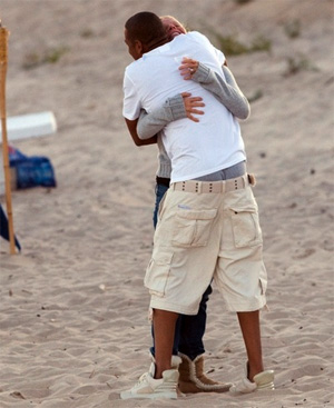 This is a photo of Jay-Z hugging Gwyneth Paltrow. I'm not sure when it was taken, where it was taken, or why they are hugging. Obviously, they're somewhere nice, which is almost always the case when two incredibly rich and famous people meet. "Jay-Z hugs Gwyneth Paltrow on the oil-stained lot of an abandoned gas station four miles outside of Cincinnati, Ohio." No. Nice places, only. Of course, we already know that Gwyneth Paltrow is friends with him. Her kids call him "Uncle Jay"! (GROSS!) (At the very least, it is gross that I know that!) But seeing this incontrovertible proof of the warm and friendly bond that one of the greatest rappers of all time shares with one of the most insufferable women on the planet, it's just too much. It is like seeing a dear, close friend HUG GWYNETH PALTROW. I mean, I know as well as anyone that the wealthy and famous enjoy the company of people who understand both of those things, but also: yuck. There is literally only one thing left to do: caption this photo. Sorry guys, we have to!