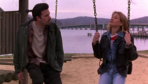 During the famous swing set scene, Joey Lauren Adams crushes all of Ben Affleck's (read: Kevin Smith's) preconceived notions of sexuality with an argument about whether or not a girl who has never had sex with a man is or is not a "virgin." Joey Lauren Adams argues that she broke her hymen on a fence post (?) and that you can still have penetration with a women, thereby convincing Ben Affleck that maybe he's been wrong all along and a woman who has only had sex with a woman ISN'T a virgin. The whole thing is very Freshman Year Of College Cafeteria Discussion. The problem is that at no point does the lesbian argue that a straight man shouldn't be allowed to determine the guidelines for adult human sexuality. Rather than try and play according to Ben Affleck's rules and show him the error of his ways (that still resides firmly within his boring and condescending patriarchal definition) why not tell him to SHUT THE FUCK UP. Contrary to what this movie suggests, some of us, as adults, no longer struggle with a 13-year-old's concept of how the world works.