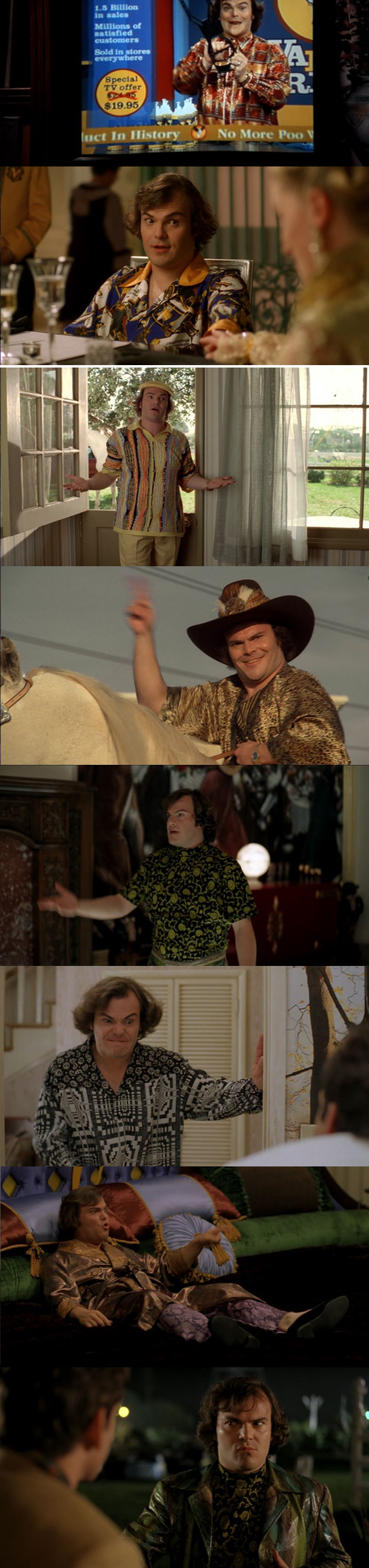 And do not even get me started on Va-POO-Rize and Pocket Flan. Well, OK, get me started. WHAT ON EARTH? I mean, I know that it is hard to think of fake inventions that are both "funny" and "realistic" but if you can't do it then maybe don't make your whole movie be about them. No one forced Barry Levinson to make a big budget movies centered around fake inventions. There is a scene soon after Jack Black gets rich where we are first introduced to flan, and everyone makes a really big deal about it. And it's like, what? Why is everyone making such a big deal about flan? And then at the end of the movie they are like BOOM! It's just storytelling at its best. You insert a really awkward detail that seems forced and nonsensical, and then an hour and a half later you turn it into a horrible joke that makes people want to die. WHO WROTE THIS MOVIE, O'HENRY?