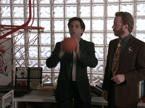 Anyway, all during this episode, Michael and Elliott are constantly playing games. You know how it is at an advertising office. This is just like on Mad Men when Don Draper would constantly pull out the stick and hoop and be like "hark, Lady Peggy, it's time to loosen the weary chains of existence for a brief spell!" Total gameheads these two. Got 2 keep it loose!