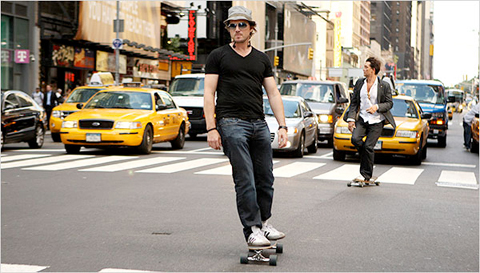 High-speed skateboarding in traffic is a bit risky, acknowledged Mr. Settle, 39. But it's the most authentic way to get around town, he added. Darting through crowded intersections on a slalom board, you feel the city, you don't just see it. You experience the whoosh of New York at street level.