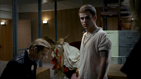 Anyway, Godric rescues Sookie from the rapist in the church basement and snaps his neck, although not before the rapist manages to say "Godric, it's me!" which I sort of hoped they would explain later, why they were buddies, but they never really did.