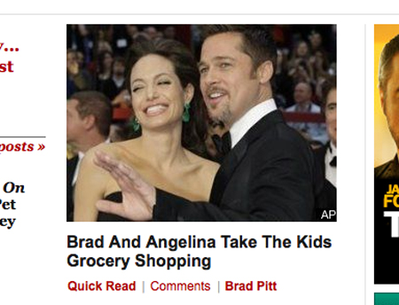 Seriously, HuffingtonPost? Look, I'm not going to lie to you. I share a small fascination with celebrity gossip (no perezo). Because I live in a world of other human beings whose value systems overlap and influence mine, and it's impossible to completely extricate myself from the dominating pop culture engine of the world, which at the moment is celebrity gossip. But this is unacceptable. Even US Magazine should be ashamed of itself (if they somehow weren't already). It would be bad enough if it was just a headline, or a useless, heartbreakingly dumb photo gallery, but someone took the time to interview people and make it into a whole story. Journalism!