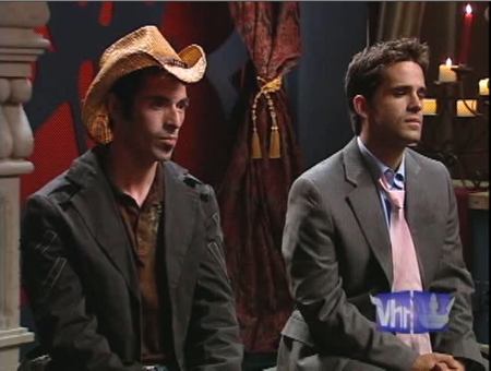 The transformation into goofy-cowboy-hat-wearing Human Eyebrow Piercing is definitely complete, but in terms of transformations, Simeon is no Rian. Not that I wanted Rian to win. He probably would have cried. It's too bad that this is the one reality show that doesn't have a Reunion Episode, and yet it's the Reunion Episode I would most like to see. Boo. I'm also disappointed that they did not repeat the bridge episode from the first season in which Mystery dressed up in a FAKE BEARD and GARBAGE CLOTHES and pretended to be a WANDERING BUM from the SCOTTISH HILLSIDE in order to better spy on the boys in the field. Oh well. Maybe in season three.