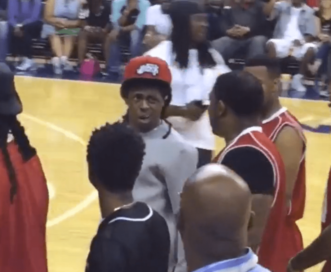 Lil Wayne's name has been attached to a fair number of headlines lately, for better or worse. Weezy and Young Thug have been enmeshed in what Tom calls this year's "strangest and most high-profile rap feud," and just last week that somewhat-muted hostility got a lot more attention than it ever should have, after Young Thug's manager, Jimmy Carlton Winfrey, was arrested and charged with aggravated assault, terroristic threats, possession of a firearm by a felon, and criminal gang activity under the pretense that he shot at Lil Wayne's tour bus back in April. Needless to say, Weezy's got a lot on his mind right now, and maybe participating in a charity basketball game wasn't a great PR move. While acting as coach of his Young Money team last night, Weezy got into an altercation with a referee. According to XXL, he charged at the man before spitting on him. Ironically, this all happened at a "stop the violence" event. The video below doesn't show much of the fight, but you can watch an indignant Weezy and his crew storm off of the court.