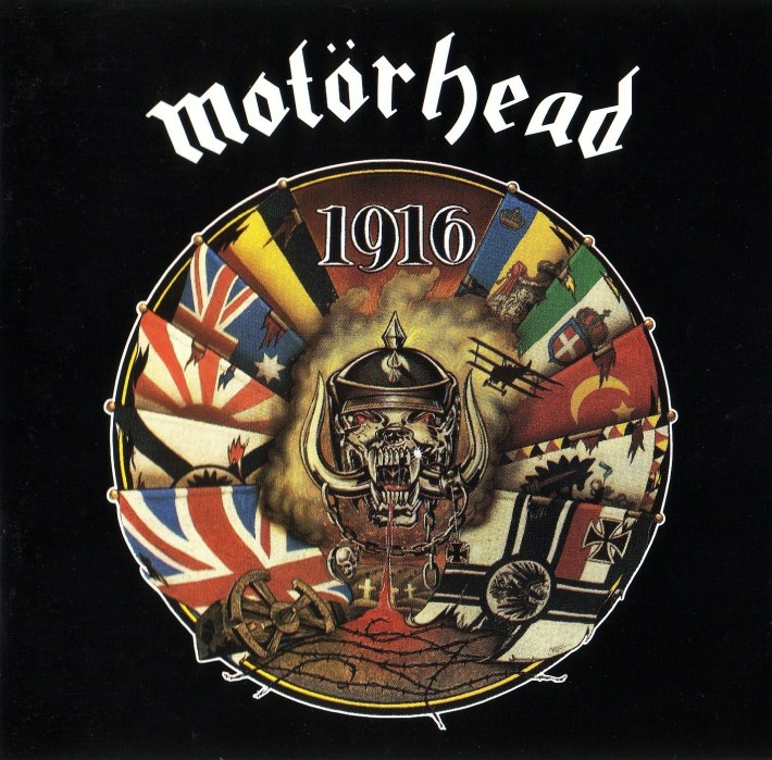 The main thing that's got to be discussed is the title track, a morose ballad that closes the disc. Built around acoustic guitar and somber keyboards, Lemmy croons(!) a story of young men sent off to die in World War I. It's unlike anything else in the Motörhead catalog, a companion piece to the Pogues' "And The Band Played Waltzing Matilda" and one of the most upfront exhibitions of Lemmy's decidedly antiwar views. The rest of the album is typical Motörhead, of course — fast, loud, and catchy, with as much rock 'n' roll swagger as metal aggression, if not more. Among the high points: "I'm So Bad (Baby I Don't Care)," "No Voices In The Sky," and "R.A.M.O.N.E.S," a tribute to his friends and peers. Note that most of those come early in the disc's first half; 1916 starts strong, but peters out toward the end.