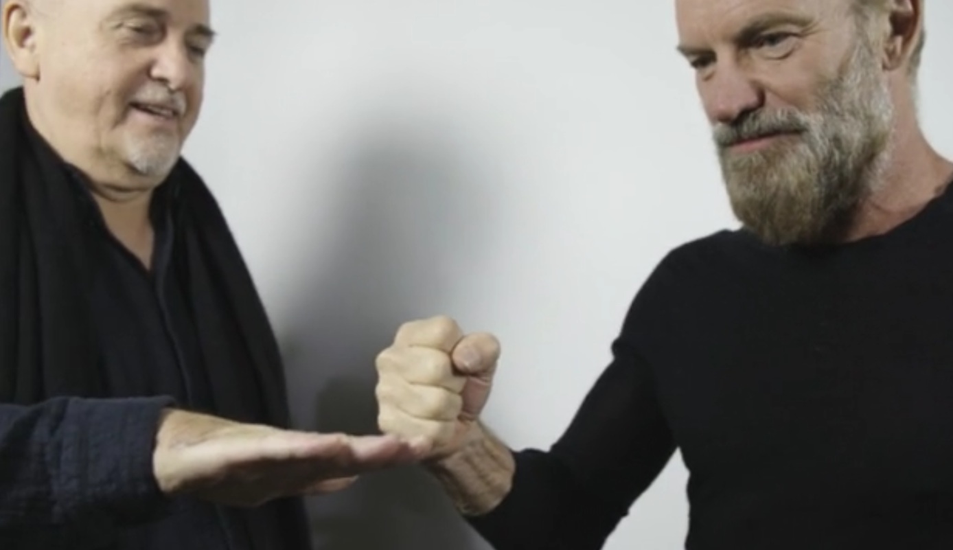 Sting and Peter Gabriel are two of the old gods of ambitious, searching, prog-inclined '80s pop. The two English gentlemen toured together in the late '80s for Amnesty International, and they're about to hit the road together again this summer, playing some of North America's finest hockey arenas on what they're calling the Rock Paper Scissors tour. The two will sing a lot of duets on the tour, and they say that they're planning to play the hits. They also say that the main point of the tour is to have fun, which is nice. In a video promoting the show, we see the two of them talking about how much they like each other and rehearsing a bit of Gabriel's "Shock The Monkey" at Gabriel's own Real World studio. Below, watch that video and check out the tour dates.