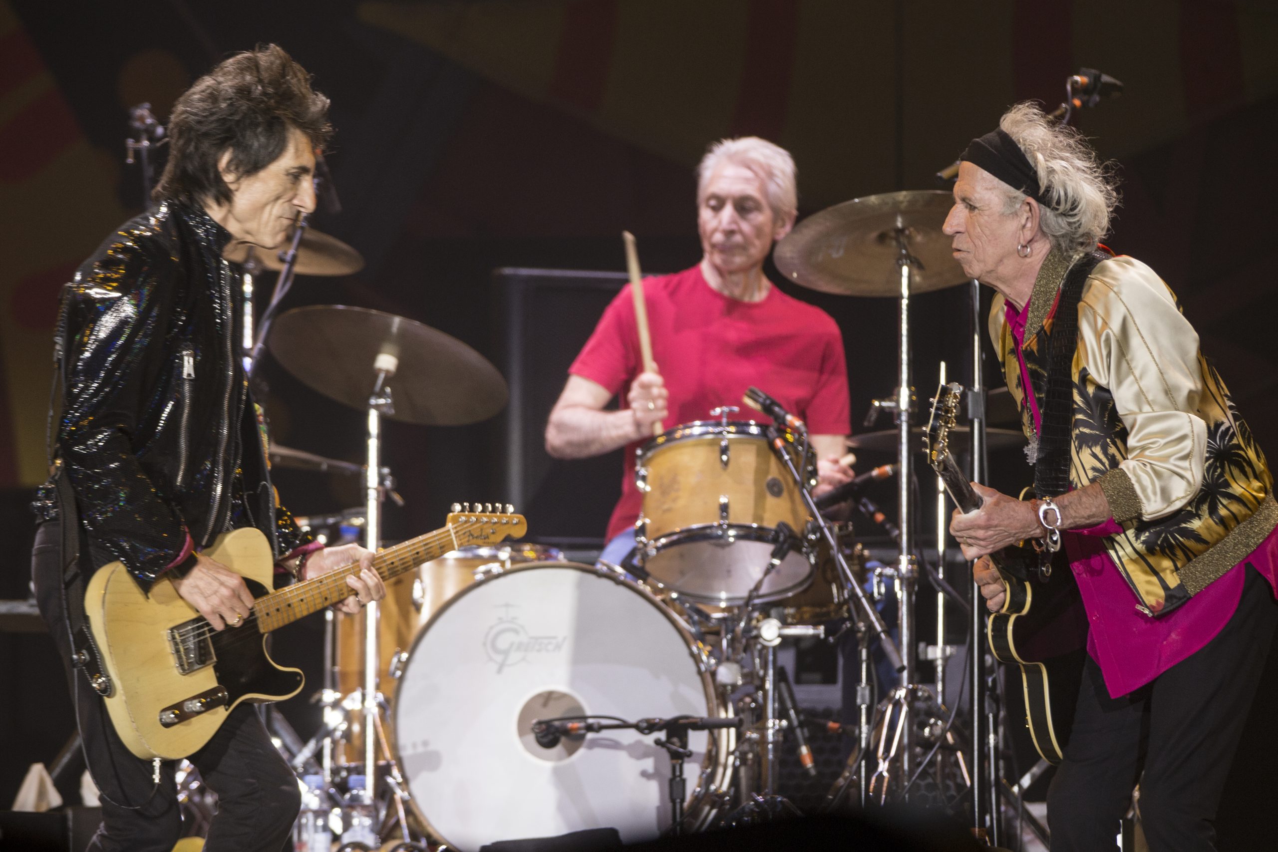 SANTIAGO, CHILE – FEBRUARY 03: Ronnie Wood and Keith Richards of The Rolling Stones perform live on stage during the America Latina Ole Tour 2016 at Estadio Nacional on February 03, 2016 in Santiago, Chile. (Photo by Carlos Muller/Getty Images for TDF Productions)