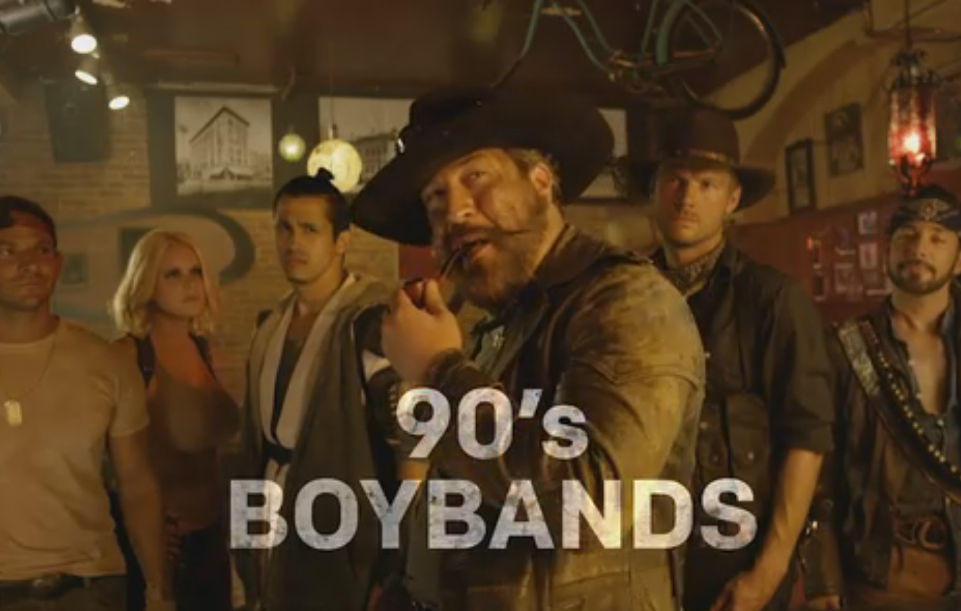 "In the Wild West, to fight the undead, you have to resurrect '90s boy bands." That's the tagline for SyFy and the Asylum's new movie Dead 7, and that -- plus "from the makers of Sharknado" -- tells you all you need to know. Written by the Backstreet Boys' Nick Carter, who stars in the film along with his wife Lauren Kitt, his bandmates A.J McLean and Howie Dorough, 'N Sync's Joey Fatone and Chris Kirkpatrick, 98 Degrees' Jeff Timmons, and Erik-Michael Estrada, Jacob Underwood, Trevor Penick, and Dan Miller of O-Town, the film follows the exploits of the former stars as they, yes, fight zombies in a post-apocalyptic Wild West. The official trailer has now arrived, and it is ridiculous. Watch it below.
