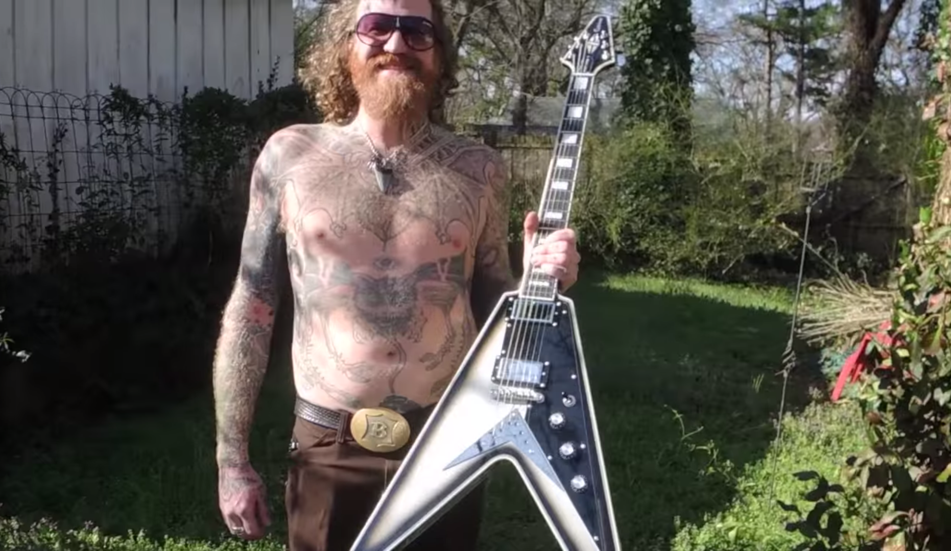 Mastodon's Brent Hinds designed a customized flying-v shaped guitar for Epiphone. According to Pitchfork, Hinds teased the design back in 2015 when he posted an image of the prototype to his Instagram account: