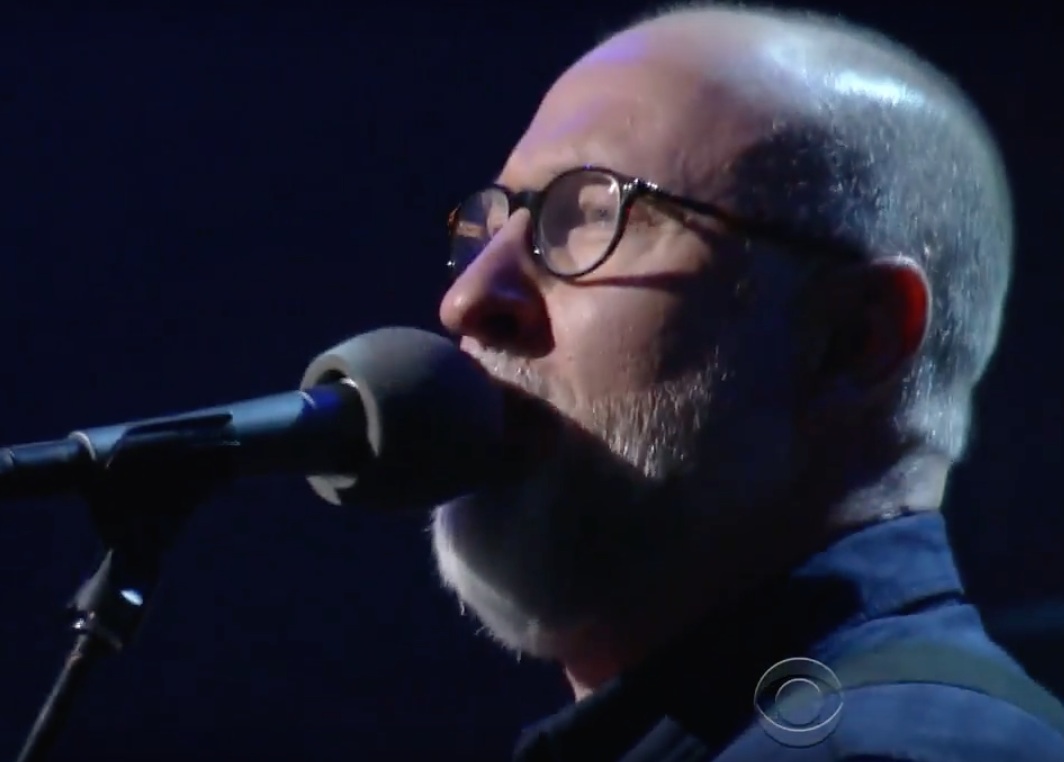 It has to be so, so hard for a punk band to get its point across in a format like the late-night TV live performance. And it has to be even harder when the band's frontman is a 55-year-old legend. And yet motherfucking Bob Mould just brings it every time he gets a chance to rock out on television. Mould released his impressive album Patch The Sky last month. And last night, he was on the Late Show With Stephen Colbert to bash out the rousing apocalypse anthem "The End Of Things" with his great touring band of Jason Narducy and Jon Wurster. Watch him destroying shit below.