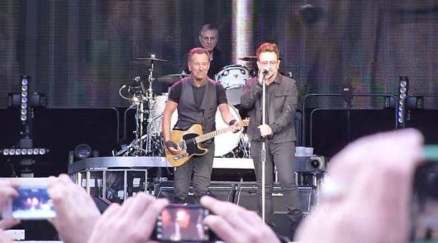 Bruce Springsteen & The E Street Band were joined onstage by Bono last night during their second show at Dublin's Croke Park. The U2 frontman performed a rendition of "Because The Night," which Springsteen co-wrote with Patti Smith and was originally released as a single off of her album Easter in 1978. Bono and Springsteen performed this song together in Miami back in 2003. Check out footage below.
