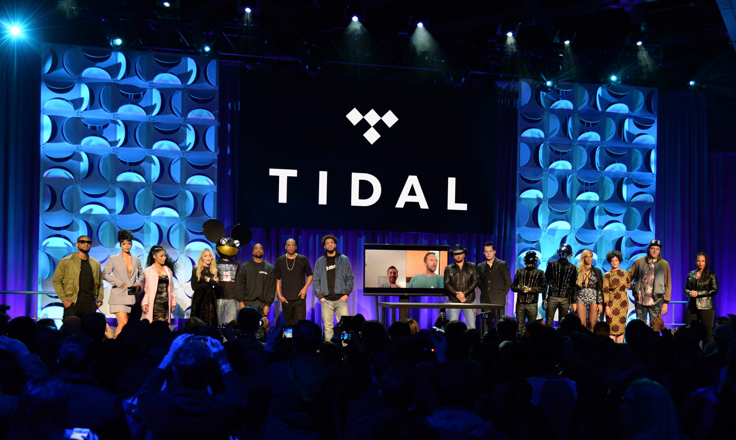 NEW YORK, NY – MARCH 30: Usher, Rihanna, Nicki Minaj, Madonna, Dead Mouse, Kanye West, Jay Z, Jason Aldean, Jack White, Daft Punk, Beyonce and Win Butler attend the Tidal launch event #TIDALforALL at Skylight at Moynihan Station on March 30, 2015 in New York City. (Photo by Kevin Mazur/Getty Images For Roc Nation)