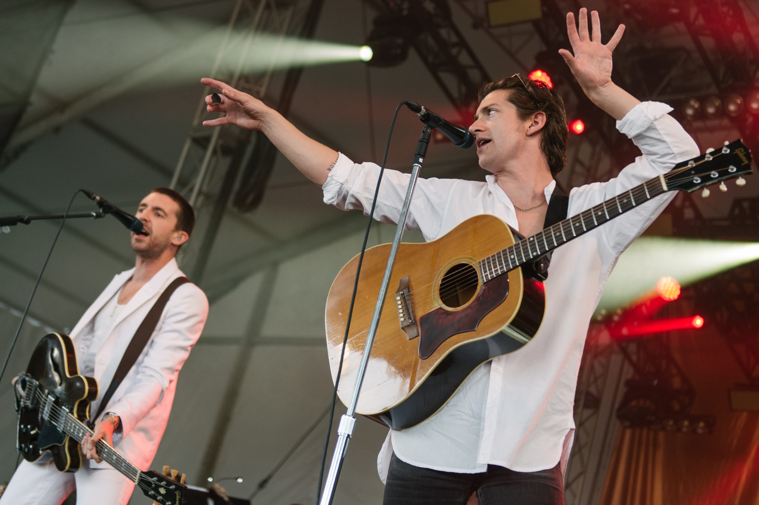 Right now, Arctic Monkeys frontman Alex Turner is hitting up virtually every big music festival in the world with his side project, the Last Shadow Puppets. And while on tour, they're doing whatever they can to keep themselves amused, including occasionally improvising songs about other bands on the bills. At the Open'er Festival earlier this month, that meant they did a song about Tame Impala. And as Pitchfork reports, they did something similar at Ontario's Wayhome festival, honoring the night's headliners Arcade Fire by making up a song about how everyone in the crowd should get a good spot for the band. Watch a fan-made video of the goofy stunt below.