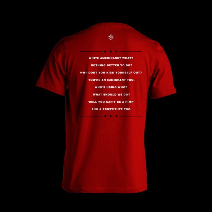 The White Stripes came together earlier this week to make their first statement as a band in a long time, decrying the use of "Seven Nation Army" in a fan-made video in support of Donald Trump's presidential bid. Now Jack White has taken it a step farther: He's selling "Icky Trump" T-shirts, a riff on the White Stripes' 2007 studio swan song Icky Thump. "Icky" doesn't even begin to describe the man, but we can't all say "Fuck Donald Trump" so freely like YG I guess. The words are in a stark white font against the red shirt, matching the color scheme from Trump's "Make America Great Again" hat as well as every White Stripes record in history. The back of the shirt includes a clever play on the "Icky Thump" lyrics: