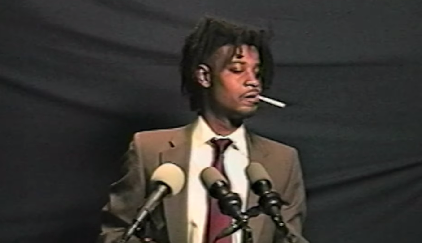 One of the raddest songs on Danny Brown's exceedingly rad Atrocity Exhibition is the clattering, Evian Christ-produced "Pneumonia." Today that track gets a video, which intersperses shots of Brown hanging from chains with grainy old footage of 1980s Republicans. Brown himself steps up to the podium in a suit and tie as well. It's a simple yet vivid video; watch below.