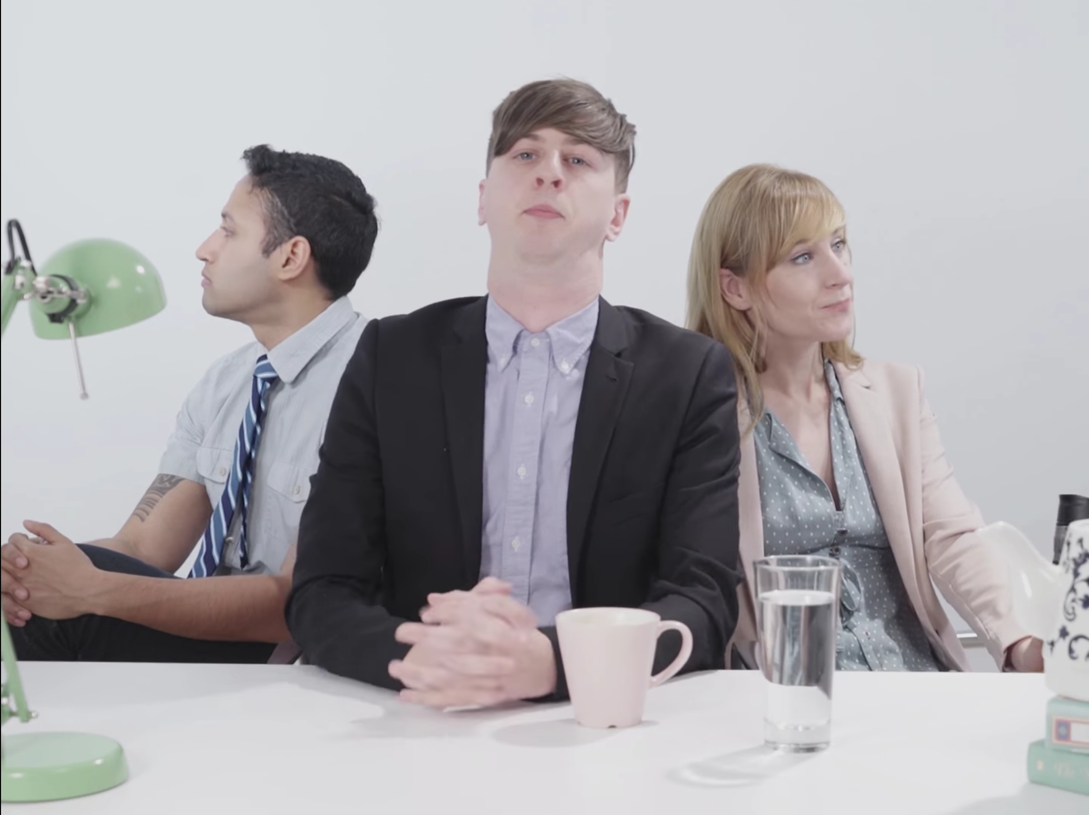The video for Hiccup's new song "Teasin'" depicts a zany day at the office filled with outlandish coworkers doing outlandish things. Director Jess Lane focuses in on all the odd little quirks expressed by employees seemingly losing their mind as the day goes on, willing to do anything to break up the monotony. The members of Hiccup are among the staff, and they rock out in the break room while everyone else runs around with streamers, punches one another in the face, and does shirtless handstands in the bathroom. The song itself is our latest taste of the band's upcoming debut Imaginary Enemies, and itself feels like an expression against corporate repression, with its whisking guitars bombarding the stillness. Watch below.