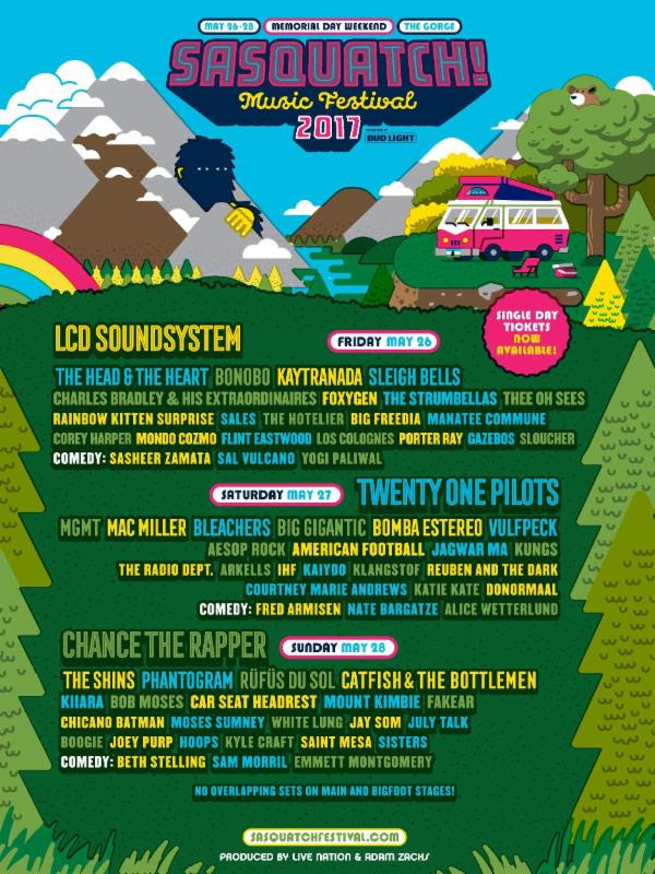 Frank Ocean will no longer be playing Sasquatch! He was billed as the Friday (5/26) headliner and has now been replaced by LCD Soundsystem. Chance The Rapper and Twenty One Pilots will still headline the other two nights of the festival. Sasquatch! tweeted that Frank Ocean cancelled "due to production issues beyond his control." Check out the revised poster below.
