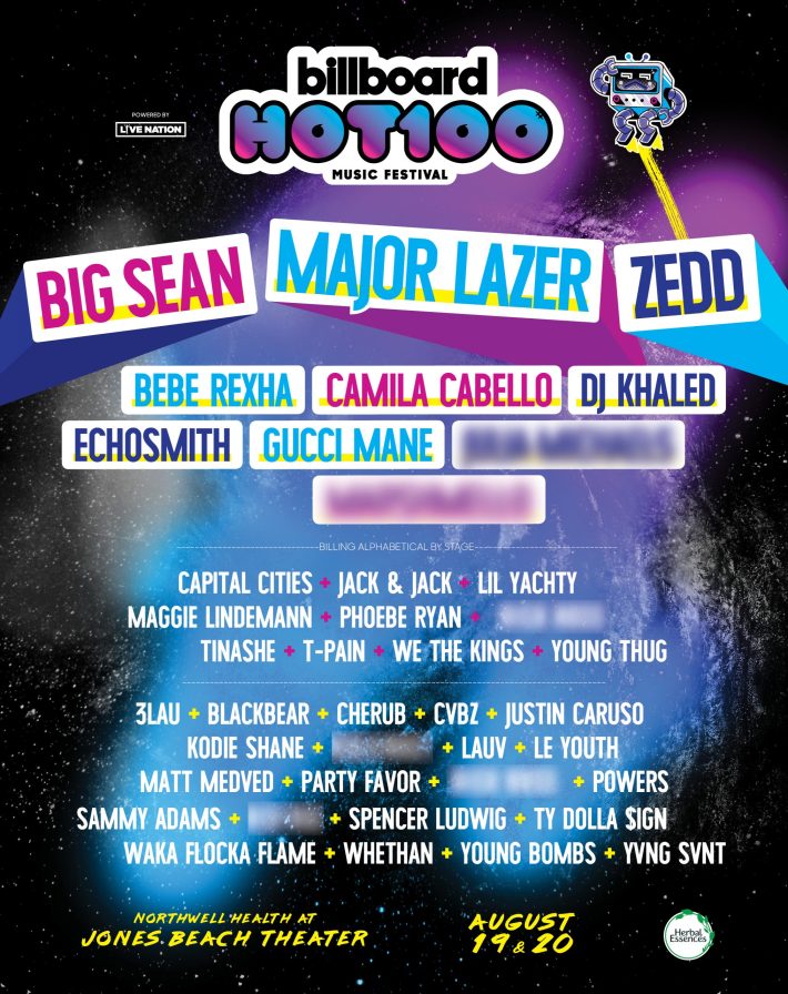 The Billboard Hot 100 Music Festival is produced by Billboard in partnership with Live Nation. It will take place at the Northwell Health at Jones Beach Theater in Wantagh, New York.