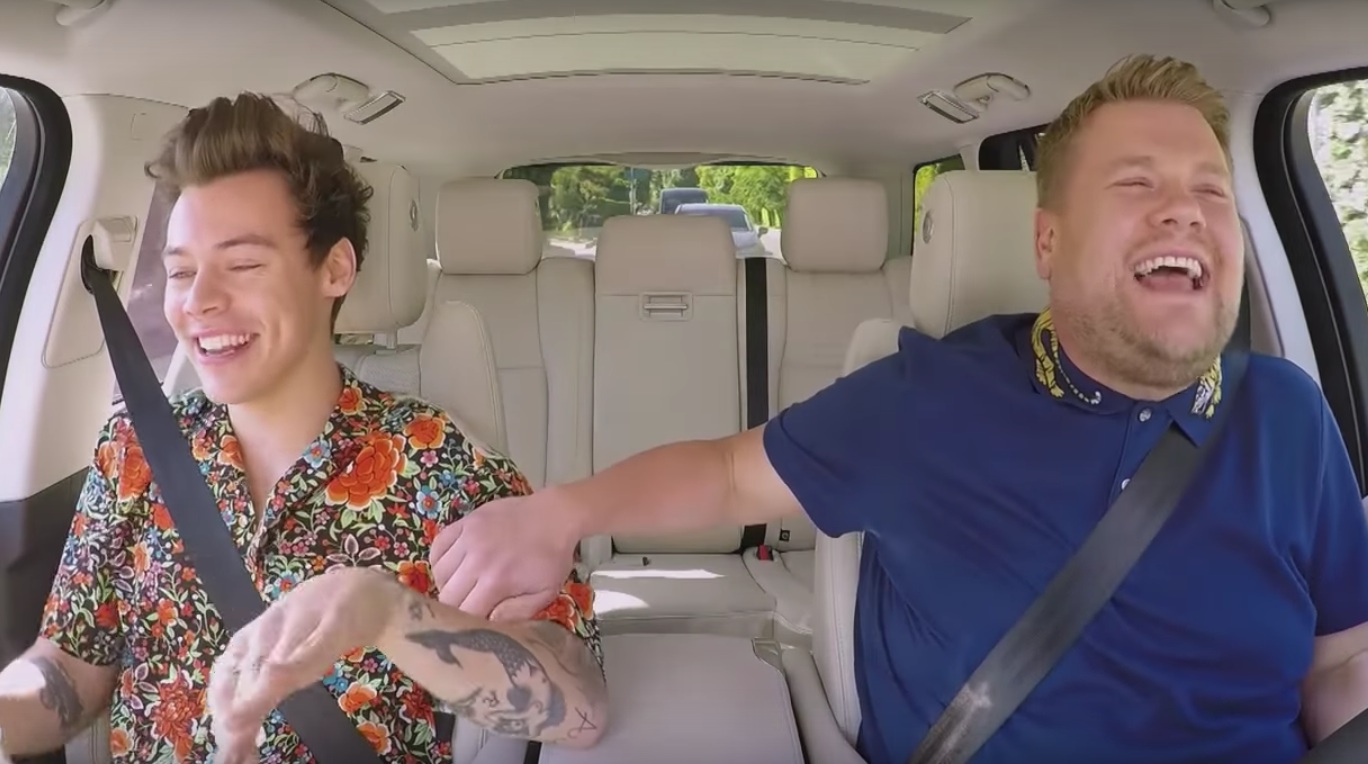 Harry Styles and James Corden go way back together, and Styles just spent the entire week -- which not coincidentally was the week after his solo debut came out -- sitting in on Corden's Late Late Show. (He did Corden's monologue for him a couple of nights ago.) So you knew this was coming. On last night's show, Styles did Carpool Karaoke with Corden. It seems like there was a very intentional decision not to do any One Direction songs. Instead, they sang a few of Styles' songs, as well as OutKast's "Hey Ya!" and Lionel Ritchie and Diana Ross' "Endless Love." They seem to actually like each other, and given that charm is the entire point of this enterprise, that made it watchable even if you want to put your face through a window whenever you look at Corden's face. (Not saying this is you. I'm just saying.) Watch it below, if you feel like it.