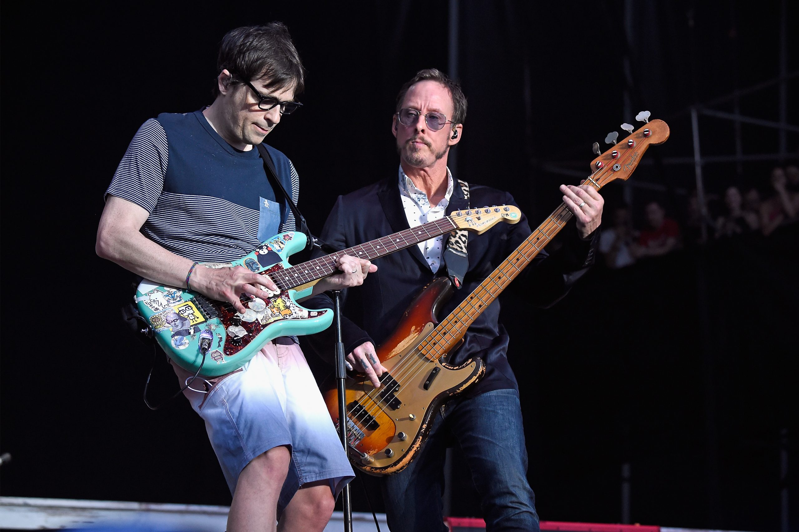 ?This was clear from the strong beginning of the set: "Hash Pipe" into "My Name Is Jonas" into "Pork And Beans." That shouldn't necessarily read like a greatest hits opening salvo — there are plenty of Weezer diehards who probably still hate "Pork And Beans," and at one point "Hash Pipe" might've felt cartoonish preceding "My Name Is Jonas." But how can you deny that riff, that chorus? Whatever peaks and valleys exist throughout their career, that's almost entirely swept away when they put it all together live. People cheered and sung along to it all with consistent exuberance. The often-maligned "Beverly Hills"—now somehow over ten years old and, thus, registering as an old Weezer hit—garnered the same reaction, by the way. ??Contrary to their occasionally perplexing stylistic detours, or Rivers Cuomo's status as an idiosyncratic frontman even by the metrics of idiosyncratic '90s frontmen, or the band's ability to still come across like the weirdo high school kids (no doubt partially because of Cuomo's and Brian Bell's apparent agelessness), it's somewhat striking to realize you can catch Weezer at a festival in 2017 and they're crowd-pleasers. Cuomo has, of course, had his fair share of fixations on Top 40-type pop success here and there. But even so. It's comforting to know you're going to see Weezer, and they're going to play the singles and favorites from all over their career, saving the biggest ones for last.