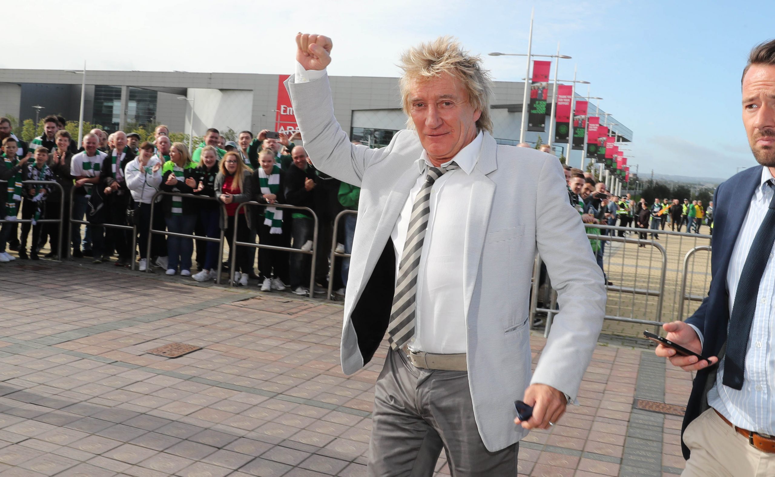 GLASGOW , SCOTLAND – SEPTEMBER 10: Rod Stewart arrives at Celtic Park before the Ladbrokes Scottish Premiership match between Celtic and Rangers on September 10, 2016 in Glasgow. (Photo by Steve Welsh/Getty Images)