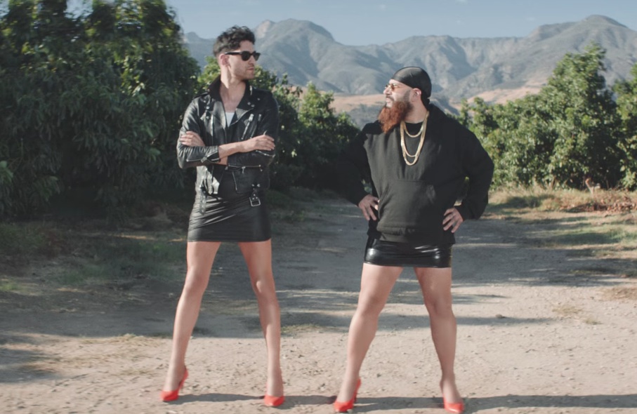 The '80s-fetishizing veteran synth-funkateers Chromeo have been teasing a new album Head Over Heels, the follow-up to 2014's White Women, for a little while. And today, they've shared a smoothly squiggling single called "Juice," which sounds like vintage Chromeo. They've also come out with a video for the track, in which director David Wilson films Chromeo members Dave 1 and P-Thugg hanging out in an orange grove and wearing leather miniskirts and red high heels. It's a single-joke video, but it's a well-executed one. Check it out below, via Pitchfork.