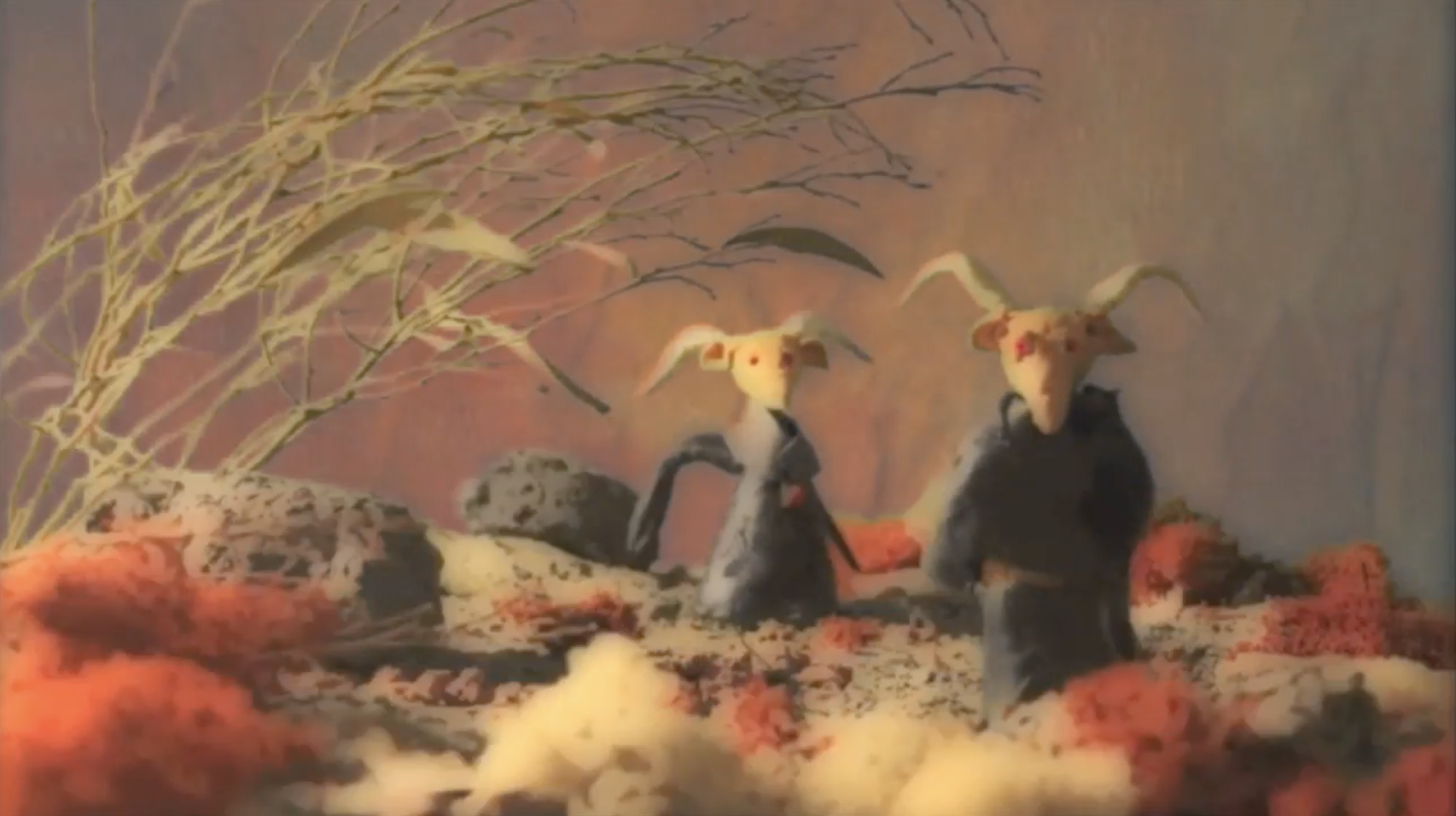 We named Club Night one of the Best New Bands Of 2017, and the Oakland collective continues to impress us today with the video for their relentlessly energetic, "Shear." The track was the lead single from their EP, Hell Ya, which also cracked our list of 25 Great EPs From 2017. In the clip, two rams in robes seem to be performing some sort of harvest ritual. The eerie stop-motion culminates in the rams praising the pyramid on the all-mighty dollar. Watch and listen below.
