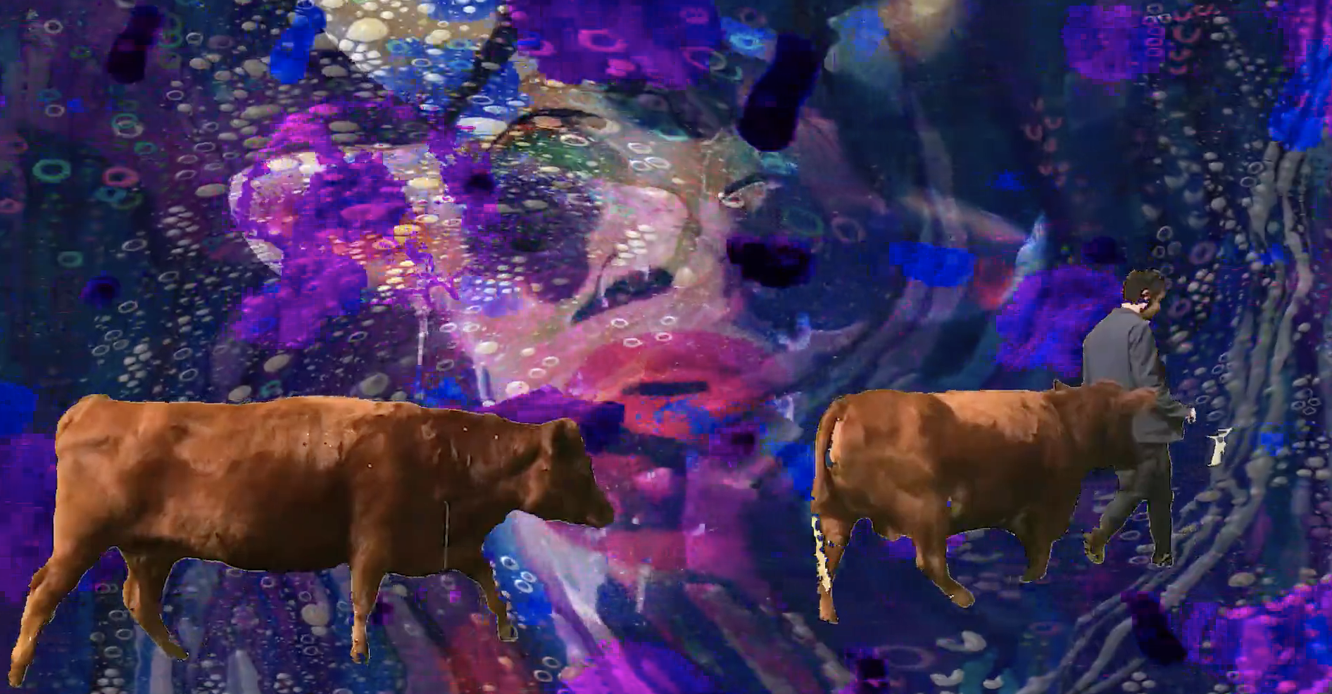 This latest project was recorded on a Tascam 48 half-inch reel-to-reel tape machine early last year in Asheville. Its lead single, "Saturdays (Again)," is a woozy jangler that echoes in video director Abby Portner's psychedelic bovine hallucinations. Billed as a "short story," the clip involves a series of images imagined as Polaroid photos. "I wanted to try and create what it would look like inside Avey Tare's new record cover, if you were to step inside and hang out with Dave and the cows in a surreal, colorful landscape," Abby says in a statement.