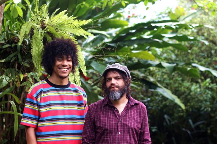 The pair are preparing to release their self-titled debut album, and today, we’re hearing its first track, "Desafio Do Guaxe." It’s a warm, lo-fi piece of organic pysch-rock comfort that sounds something like early Animal Collective. Almeida says that the song "represents all the strength and meaning of the whole project." He goes on: "Bonifrate and I were challenged to put words together describing a metaphor inspired by the singing of the Guaxe bird." Bonifrate adds that, while the duo went swimming during the album sessions, they spotted the normally hard-to-see birds right in front of them, inspiring parts of the album. "I felt it was an omen," he says.