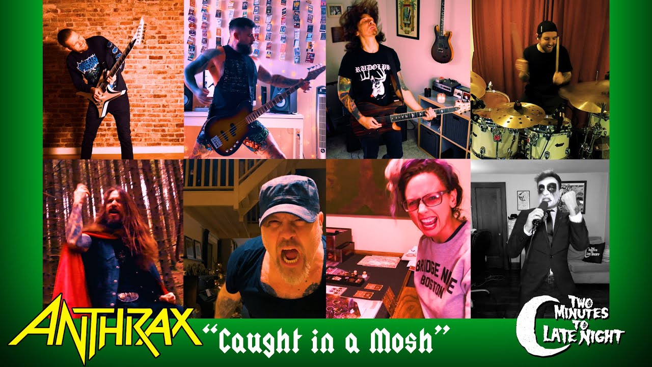 Anthrax included the almighty riff onslaught "Caught In A Mosh" on their classing 1987 album Among The Living. Moshing was still a relatively underground phenomenon at the time. Within a few years, it was all anyone did at rock shows. Anthrax were prescient! "Caught In A Mosh" is an ideal song for the Two Minutes To Late Night treatment, and Olds has put together monster band to play it.