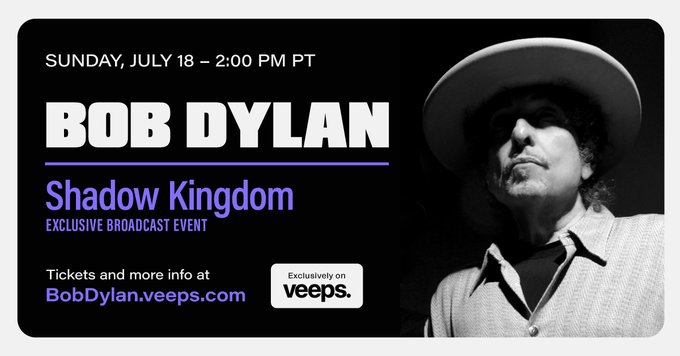 The newly minted octogenarian is doing a virtual concert called Shadow Kingdom on July 18 at 5PM ET/2PM PT -- yes, a Sunday afternoon. According to a press release, Shadow Kingdom "will showcase the artist in an intimate setting as he presents renditions of songs from his extensive and renowned body of work created especially for this event." It will broadcast through the Veeps app. Tickets are on sale now for $25 and will include access to the performance for 48 hours afterward. I wonder how many songs from on sale now for $25 and will include access to the performance for 48 hours afterward."
