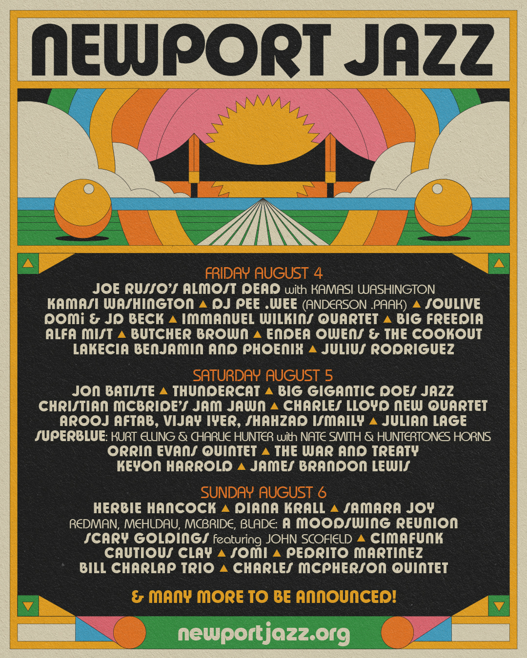 Newport Jazz Festival has announced its 2023 lineup. Top-billed acts for the 69th anniversary edition of the festival include Herbie Hancock, Jon Batiste, and the Grateful Dead cover group Joe Russo's Almost Dead, who will be performing with Kamasi Washington, who also has a set of his own.