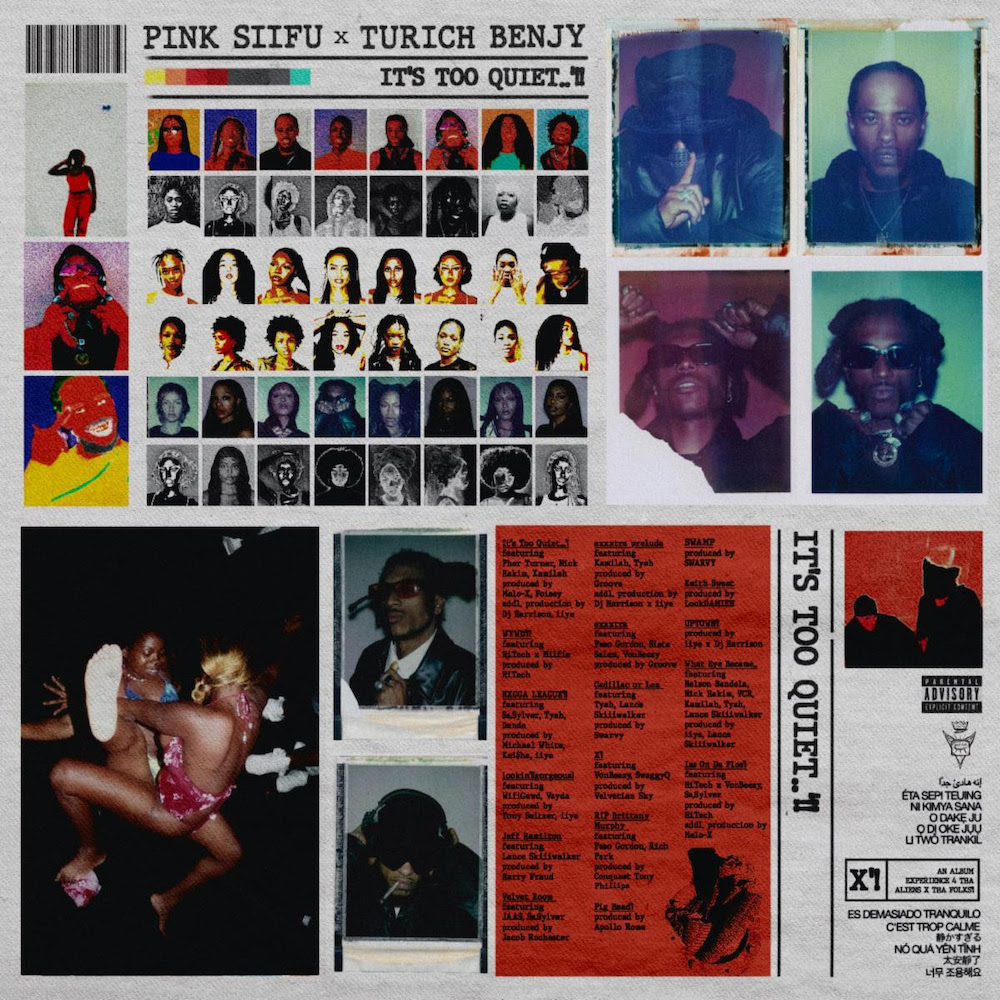 For years now, Pink Siifu has been an expressive, unpredictable force on the underground rap landscape. This year, for instance, Siifu has collaborated with people like Armand Hammer and Valee. In March, B. Cool-Aid, the duo of Siifu and producer Ahwlee, released their album Leather Blvd. Now, Siifu has released another collaborative album. On the new record It's Too Quiet..'!!, Siifu teams up with Turich Benjy, a Cincinnati artist who made a lot of contributions to his 2021 solo album GUMBO'!