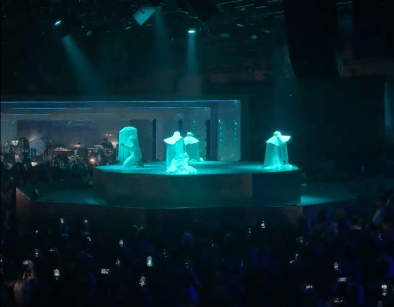 The gig was billed as “new unreleased album live for the first and only time,” but the setlist photographed by a fan shows plenty of songs from across their catalog were performed. The venue was set up like an exhibit with neon lights and statues, and the concert was as much about performance art as it was about music. Aside from an array of costumes, props, and choreographies, there was also a massive choir and orchestra. See footage below.