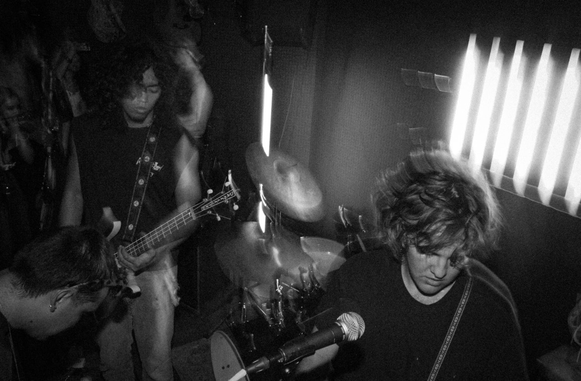 After our chat, I discover I lost all the audio because screen-recording a FaceTime automatically turns off the microphone because of wire-tapping laws. ("That’s kinda funny," Warriner says when I inform him.) We convene a week or so later for a second FaceTime, but Warriner’s phone connection goes in and out as he speaks, so he takes refuge in a Dairy Queen, where I can hear Post Malone playing on the radio in the background. Ta’aga pops in and out of the FaceTime because of his similarly shitty connection; we’re joined by Misael Lara (25, lead guitar, nickname Misa). Though not present, the group is rounded out by Isaiah Navarro (21, drums). A few nights prior, they played a mansion in Fullerton, their first show of 2024 and their first show with the new lineup. "It was one of the most energetic crowds I’ve ever had,” Warriner says.