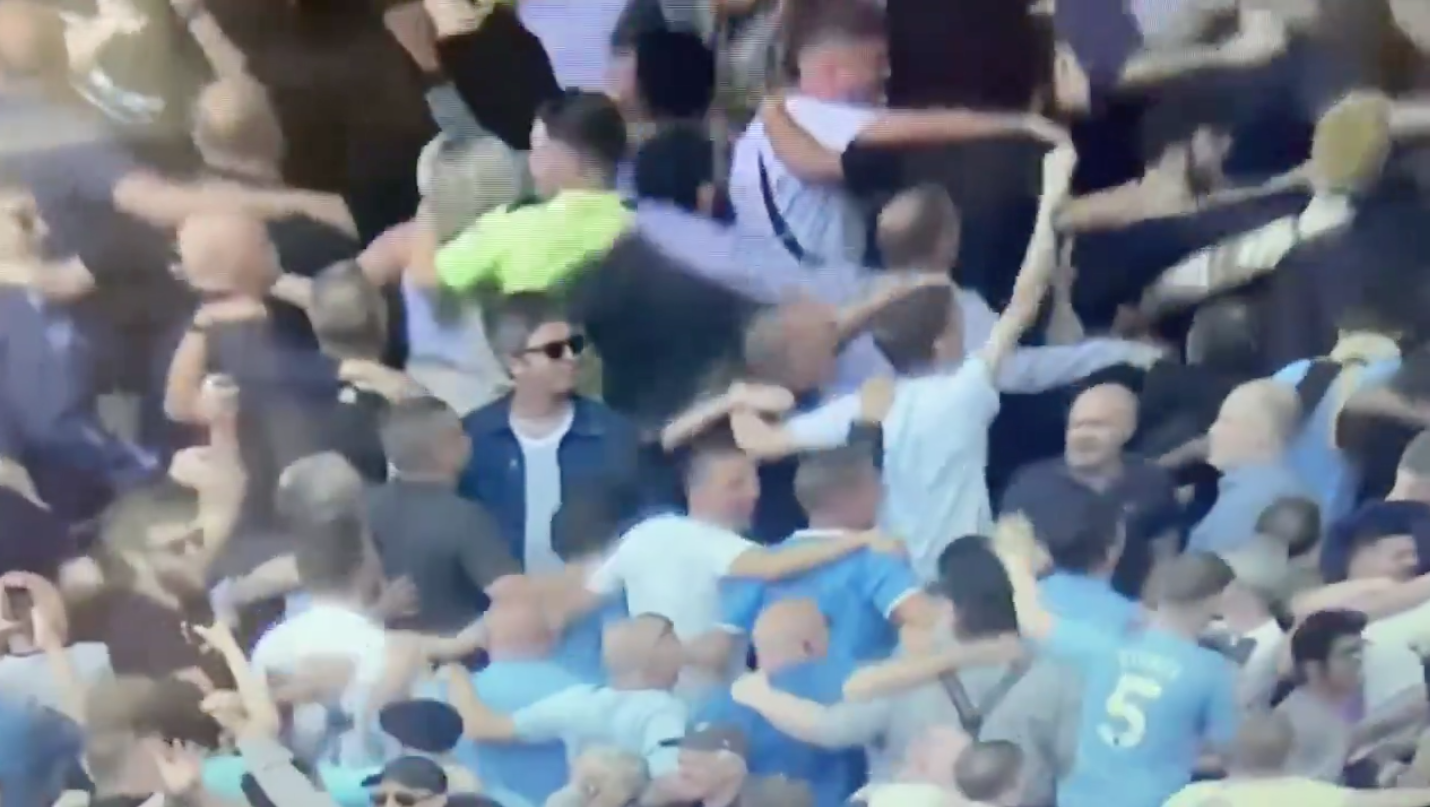 The Poznań, otherwise known as the Grecque, is a European football celebration in which fans turn their backs to the pitch, lock arms, and jump up and down. One of the clubs whose fans traditionally engage in this behavior is Manchester City, the English Premier League superpower beloved by brothers and Oasis co-founders Noel and Liam Gallagher. In widely circulated footage from Man City's 4-0 win over Fulham Saturday, Noel can be seen among the visiting fans at Fulham's stadium Craven Cottage, the lone holdout in a sea of City supporters locked in Poznań pandemonium. The Athletic’s Daniel Taylor posted the video in a tweet that reads, "Let’s be clear about this: Noel Gallagher doesn’t do the Poznan …"