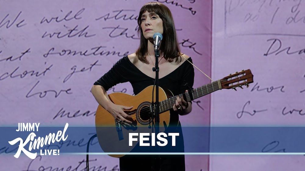 Last year, Leslie Feist released Multitudes, her first album in six years. It was one of our favorites of 2023. The Multitudes promotional cycle was relatively quiet, and the thing that most people remember is Feist dropping off of an Arcade Fire tour when allegations about Win Butler surfaced. Last night she was the musical guest on Jimmy Kimmel Live.