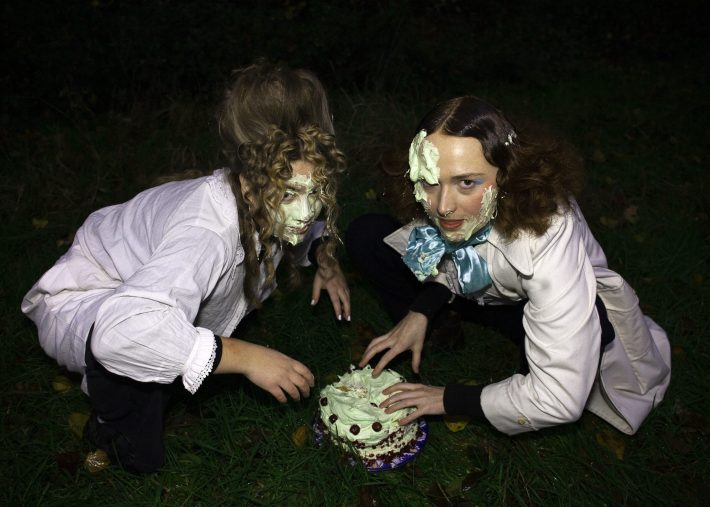 Freya Tate and Moina Moin are art school freaks who made the slif slaf slof artwork by themselves and produced the LP alongside Joe Jones. The opener, "céilí," arrived last month. Below, watch the self-directed video for that track, and hear "chaperone," which is not so much a song as it is a circus. Don't be shy! Immerse yourself in its weirdness!