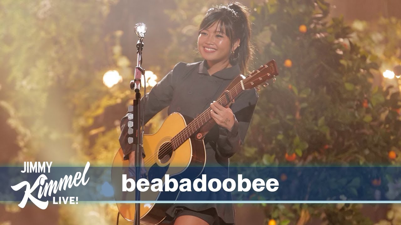Beabadoobee is out there promoting new album This Is How Tomorrow Moves, travels that brought her to Jimmy Kimmel Live on Thursday. Performing on the show's massive outdoor stage, Beatrice Laus and her band stepped up for the occasion. They played a hard-rocking version of "Beaches," which Laus has called her favorite song on the album, which sounded huge in the space.