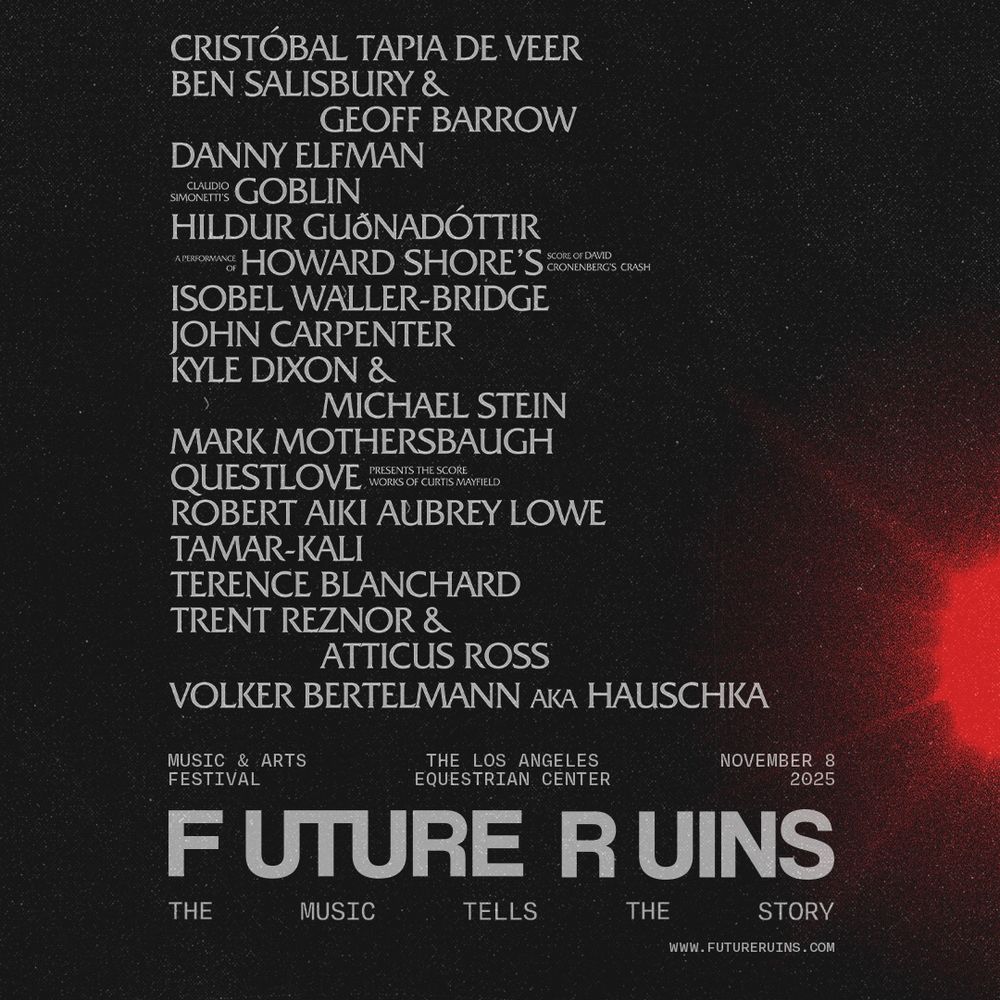 Reznor and Ross will, of course, be there performing selections from their scores for films like The Social Network, Gone Girl, and Challengers. Also on hand: Cristobal Tapia de Veer (the guy who just quit The White Lotus) the duo of Ben Salisbury and Portishead's Geoff Barrow, the embattled Danny Elfman, Isobel Waller-Bridge, John Carpenter, Devo's Mark Mothersbaugh, Stranger Things guys Kyle Dixon and Michael Stein, Terence Blanchard, Robert Aiki Aubrey Lowe, Tamar-kali, Volker Bertelmann aka Hauschka, and Hildur Guðnadóttir. Additionally, Goblin, led by Claudio Simonetti, will perform as Claudio Simonetti’s Goblin; Questlove will perform Curtis Mayfield's film score work; and there will be a performance of Howard Shore's score from David Cronenberg’s Crash.