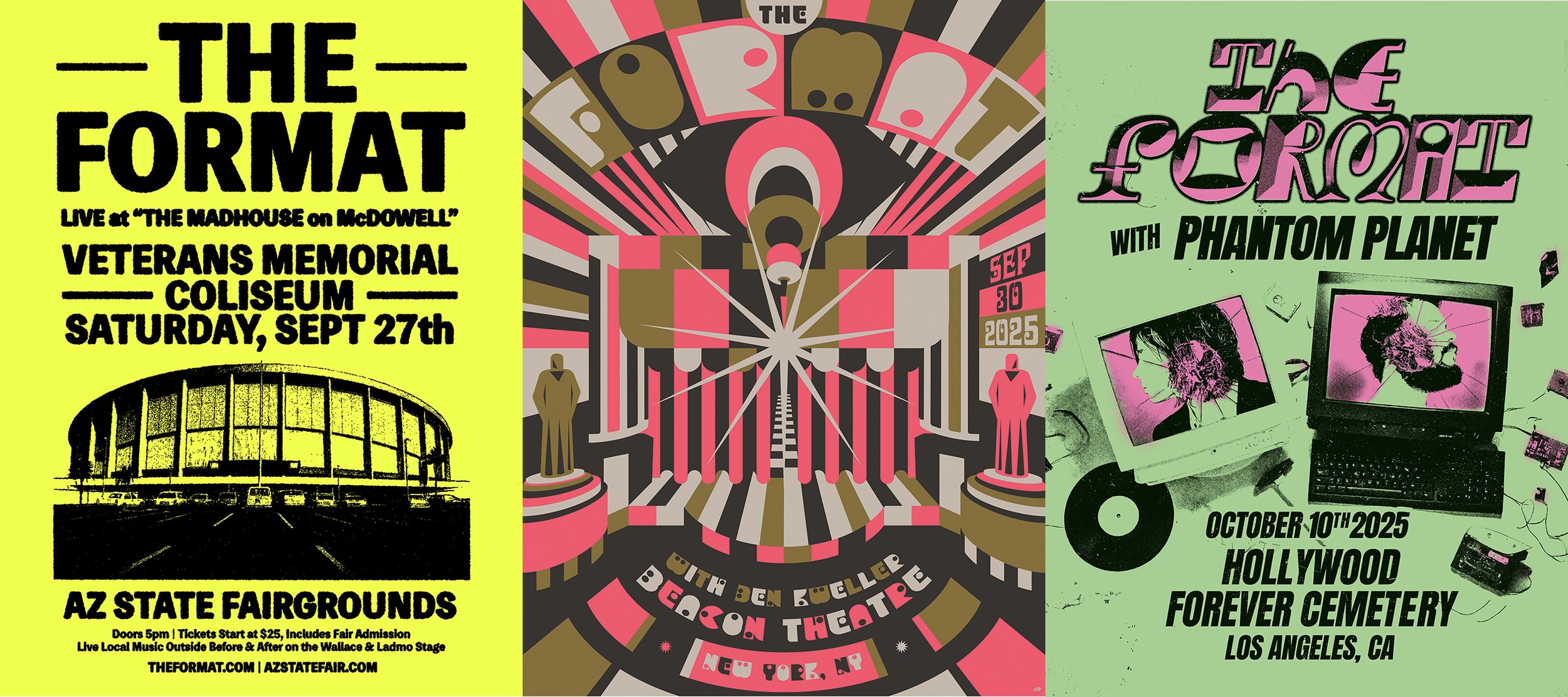 After teasing their return on social media, the Format have announced ticket info for three concerts this fall. They'll play Phoenix on Sept. 27, New York with Ben Kweller on Sept. 30, and LA with Phantom Planet on Oct. 10. Tickets for all shows go on sale July 18 at noon local time, and registering at the Format's website will allow you to access a presale starting at noon local time on July 16.