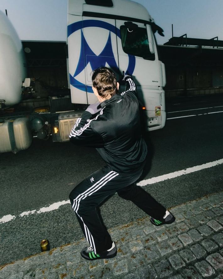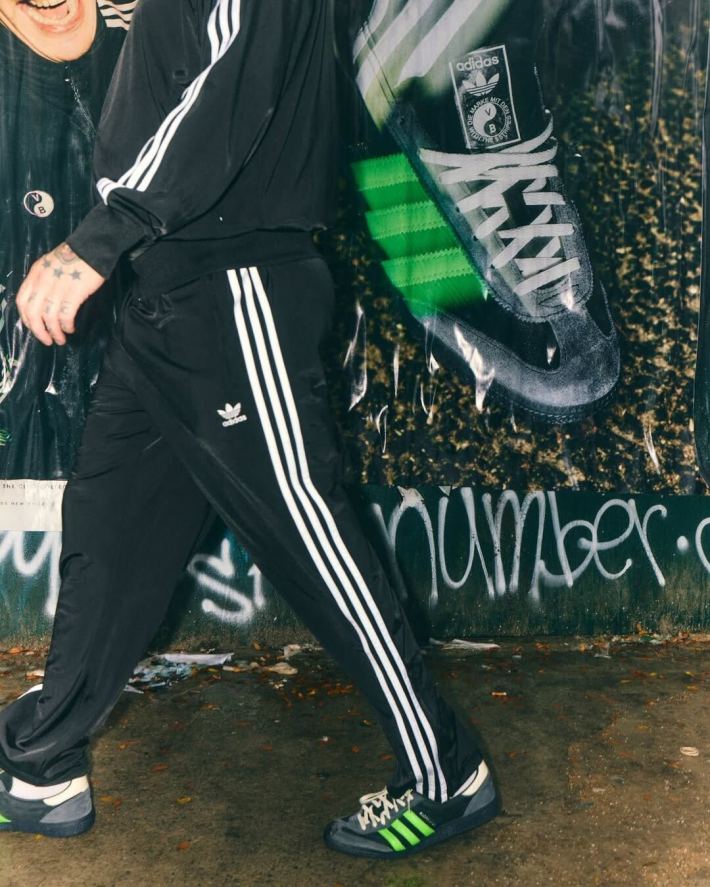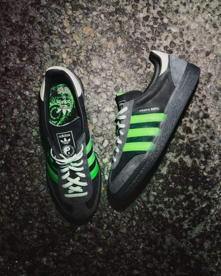 Earlier this week, Stockholm post-punkers Viagra Boys were on The Daily Show, and frontman Sebastian Murphy wore an Adidas track jacket with the Viagra Boys logo on it. I was like, "Oh, that looks cool." I didn't realize it meant that the band was about to get its own Adidas sneakers and tracksuits. But that's what's happening. Like Oasis and Korn before them, Viagra Boys now have their own Adidas.