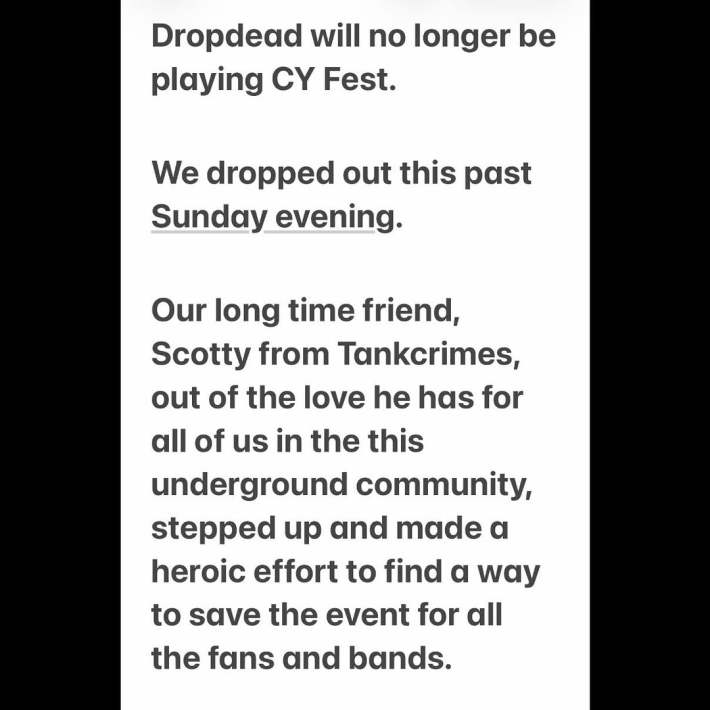 However, a few hours later, headliners Subhumans dropped off CY Fest as well.